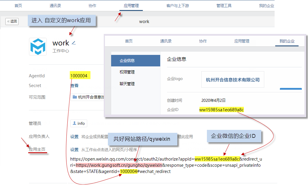 5、得到應(yīng)用的AgentId、Secret