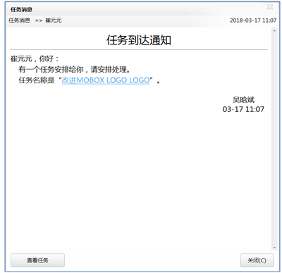 任務創建后系統把任務到達通知執行人,如果你安裝過AM系統,AM系統會在第一時間給執行人發一個任務到達消息,點開AM消息即可查看任務,并確認是否執行,具體操作如下: