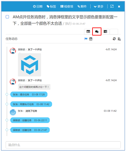 點上圖中的“”頁簽即可顯示任務的動態及交流頁面,如下圖所示: