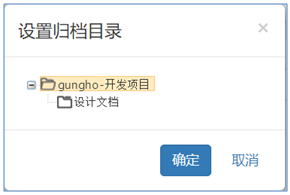 • 點擊上圖紅色框線區域的的“設置歸檔目錄”,系統彈出一個如下圖所示的項目文檔柜目錄選擇彈框。
