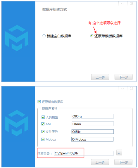 這些其實在企業(yè)系統(tǒng)正式部署前,需要做一些基本功能定義,這個定義后 ,最好對 OIAm、OIMobox、OIOrg、Oifile 等4個數(shù)據(jù)庫進行備份,直接還原到企業(yè)服務(wù)器上,這樣整體來說數(shù)據(jù)比較完整及正確。另外也相對方便。(注意:這種mobox還原的模式 只是適合與第一次系統(tǒng)部署。若用戶已經(jīng)部署過了,已經(jīng)有自己的數(shù)據(jù)了,這個bak還原的模式是不適合的,要切記!!)