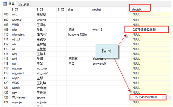 本次出現(xiàn)這個(gè)用戶不存在的原因,就是 ,因?yàn)?這2個(gè)記錄相同了造成的