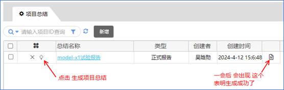 國家某試驗中心,在試驗項目完成后,進入該項目,點擊“總結” ,進行試驗報告自動生成。(實現檢測報告電子化)