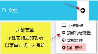 這里列出的有系統(tǒng)固有功能及二次開發(fā)功能。系統(tǒng)實(shí)施后的一些個(gè)性功能(如 項(xiàng)目菜單),可以以菜單的方式在這里列出。