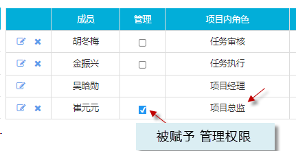(項目經理與項目總監的操作權限相似;項目創建者與項目成員的操作權限相似)