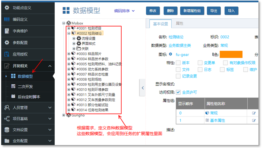按需分別定義數(shù)據(jù)模型,及模型里面的字段。這里不詳細(xì)展開(需要有mobox二次開經(jīng)驗(yàn))