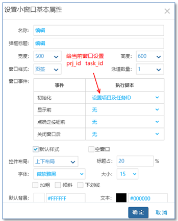 定義小窗口的時(shí)候需要注意,有一個(gè)窗口初始化腳本要執(zhí)行(目的是個(gè)小窗口內(nèi)設(shè)置prj_id, task_id)